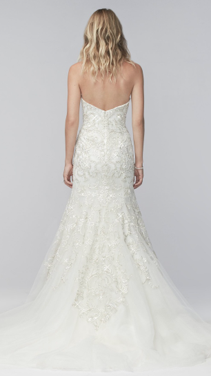 The Maggie gown was crafted with a thoughtful attention to detail. The fitted bodice and full skirt is adorned with ornately beaded Livna lace. The intricacies of the swirling lace motifs are breathtaking. Feminine and romantic, this elegant dress is made with tulle and luxurious matte organza.